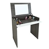 - Lift to open top panel with mirror; can be used as a writing desk when closed