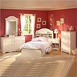 South Shore Summer Breeze Twin Bookcase Headboard in White (included quantity: 1) For a stylish, updated version of cottage country, this collection is an ideal choice when decorating a child's or teen's room. The Andover Collection Headboard is simple in design, featuring an arched silhouette, decorative molding and a set of convenient shelves. Features: Headboard only; bed not included White Wash finish ; Constructed of particleboard with finished laminate ; Constructed of CARB compliant materials ; Has two small shelves, and one large shelf ; Perfect for girls . Specifications: Dimensions: 48"H x 41"W x x 10"D ; Weight: 46 lbs. South Shore Summer Breeze Nightstand in White Wash Finish (included quantity: 2) For a stylish, updated version of cottage country, the Summer Breeze collection is an ideal choice when decorating a child's or teen's room. This nightstand is simple in design, featuring an overhang top, scallop-detailed apron, a round drawer pull and traditional style bracket feet. Features: Nightstand features solid particleboard construction with a laminate finish ; Nightstand has a vanilla cream finish ; Constructed of CARB compliant materials ; Nightstand features a spacious pull-out drawer and open storage space ; Perfect for girls . Specifications: Overall dimensions: 18"W x 24"H x 16"D; 29 lbs. . South Shore Summer Breeze 6 Drawer Dresser in White Wash (included quantity: 1) The Summer Breeze collection offers you this dresser with its white wash finish. It has a timeless country look and makes a statement in any decor. The country lines are accentuated by the shape of drawers, top moulding and kick plate. The line carved on the top drawers creates the illusion that there are four drawers on top. It features 6 practical drawers and the matching wood knobs are adding character and value to the furniture. The white wash finish offers a ro