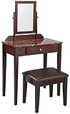Best Today Deal Crown Mark Iris Vanity Table/Stool, Espresso Finish, Marble Top in USA