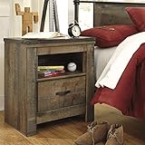 Casual style. Over replicated oak grain and authentic touch. Nail trimmed corner. Side roller glides for smooth operating drawers. Nail head trim. Slim profile dual USB charger located on the back of the night stand tops. Media opening: 16.18 in. W x 16.18 in. D x 6.73 in. H. Overall: 24.72 in. W x 16.18 in. D x 26.22 in. H (55 lbs.). Assembly Instructions.