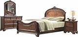 Good time offer Roundhill Furniture Huat Crowning Rustic 5-Piece Wood Bedroom Set with Bed, Dresser, Mirror, 2 Nightstands, King, Cherry in USA