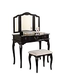 Good offering Poundex Bobkona Susana Tri-fold Mirror Vanity Table with Stool Set, Black in USA