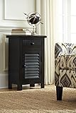 Rest easy with the fact that the Charlowe accent cabinet is crafted of sustainable mango wood. Saw marks and a richly distressed finish incorporate cool character. The louvered panel door, revealing shelved storage, is a rustic touch. Made with mango wood. Features: Finish: Black Style: Vintage Casual 1 Drawer 1 Door Specifications: Overall Product Dimensions: 18" W x 13" D x 28.25" H Overall Product Weight: 21.320 lbs Drawer Interior: 10.25" x 9.00" x 2.63" Door Opening: 11.75" x 10.13" x 15.25" Top Opening: 11.75" x 10.13" x 7.25" Bottom Opening: 11.75" x 10.13" x 7.25"
