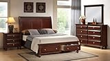 The concord cherry finish solid wood bedroom set is a warm, elegant collection that will turn your bedroom into a cozy paradise. Constructed of durable solid wood with primavera veneer in a rich cherry finish, the bed set offers traditional style and an abundance of storage and utility. This set comes with a beautifully crafted storage bed and dresser, nightstand, and mirror. Beds are available in king and queen sizes.
