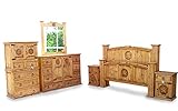 A beautiful and elegantly crafted rustic pine bedroom set, from our Mexican furniture rustic collection. Items include complete bed frame, dresser w/ mirror frame, chest and 2 night stands. Features include items made from 100% pine wood, and wrought iron hardware to enhance the rustic appearance. Please choose between the Queen Size Bed Frame and the King Size Bed Frame. Dimensions are king bed