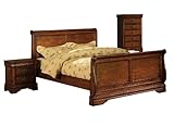 Best Deals Furniture of America Laurelle 3-Piece Sleigh Bed Set with Nightstand and Chest, Eastern King, Dark Oak Finish in USA
