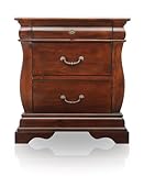Curved elegance is at your fingertips with this beautiful bedroom piece. The curvaceous nightstand provides ample space for all your bedside necessities with two spacious compartments, each accented with an antique gold handle. An additional felt-lined top drawer stores any valuables such as jewelry, watches and glasses so that you can keep the precious ones out of sight. A complimenting dark walnut finish coats the sturdily built piece and emphasizes the selected solid woods and wood veneers construction. You'll be organized and stylish with this delightful nightstand. Other matching case goods sold separately. Manufactured in Vietnam, no assembly required. Nightstand: 24"W x 16"D x 27"H. Decor NOT included.