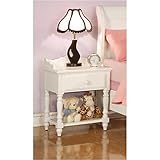 You'Ll be set with this attractive nightstand by your bed's side. The piece carries a crisp white finish and features turned legs and a round wood knob. In addition, the drawer and lower shelf are great for keeping books, flashlights, magazines and framed photos. You can have a classic, youthful look for your child with this nightstand.