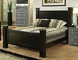 The Elena California King Bed is a transitional style black poster bed with a mar resistant black laminate finish. Detailed moldings on the Headboard and Footboard accent the large scale of the bed. Assembled in the USA. Product Materials: MDF, Laminate, Wood.