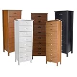 The Neuvelle Lingerie Bureaus nicely compliment the rest of our distinct chest collection. Incorporating our signature corner posts we trimmed the width to 20 opening new possibilities for smaller rooms and tight spaces. Their smaller footprint enhances their elegance yet offers spacious storage for special clothing including lingerie, blouses, sweaters or jewelry. The 6 drawer lingerie bureau measures 44H x 20 W x 16 D. and weighs 52 lbs. The 8 drawer lingerie bureau measures 57H x 20 W x 16 D. and weighs 72 lbs. Each Lingerie Bureau drawer measures 16 wide x 12.75 long x 5.50 deep. Available in black, cherry, oak, walnut, and white...sorry not pine.MDF, is a man-made fiberboard consisting of wood fibers and resin binders. It is known for its strength and stability. It is uniform in consistency and is knot free. It is structurally more stable than medium weight hardwood and it will not crack. Finishes adhere well to it, which results in a smooth end coat.