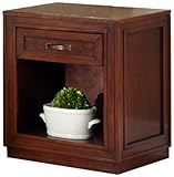 Create distinctive style with this modern storage Night Stand. Mahogany solids and cherry veneers are warmed with a neoteric seven step Cherry Finish. The Duet Storage Night Stand by Home Styles is perfect for a night stand or accent table. Providing ample storage with one drawer that features mitered cut framed drawer front and side mounted easy-glide suspension and one large open storage area under the drawer. This unique group is finished off with antiqued brass hardware. Size is 22-inch wide by 18-inch deep by 26-inch high. Assembly required.