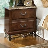 About The Santa Cruz Collection: The captivating scrollwork of iron balconies adorns the villas of old Santa Cruz, just as they highlight our alluring Santa Cruz Bedroom. Focal point details include sweeping scrolled metal elements, cases feature wide pilasters, emphasized parting rails and overlapping clean faced drawer fronts with ogee edge shapes. A warm brown cherry color radiates from this graceful group. Bronze tone cast metal bail hardware and a dark aged bronze finish on tubular metal elements combines for an inviting old villa character. Features: Warm brown cherry finish Sturdy folded panel construction Quality engineered wood products and bonded paper laminates with beautiful cherry graining. Tops are Marbella faux marble tops with the look of rich and lustrous stone. Bronze tone cast metal bail hardware and a dark aged bronze finish on tubular metal elements Clean faced drawer fronts with ogee edge shapes Wide pilasters 2 drawers Surfaces clean easily with a soft cloth Specifications: Overall product dimensions: 26" H x 23" W x 16" D