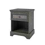 Altra Stone River Night Stand with Fabric Insert adds distinctive texture and dimension to your bedroom. This beautiful Night Stand features a rustic Rodeo Oak finish with coordinating Pewter knobs. The eye-catching, linen-like fabric insert on the drawer gives your bedroom an instant upgrade. Night Stand offers a large drawer to keep personal items handy and an open cubby to store your books and magazines for some light reading before bed. Altra Stone River Night Stand with Fabric Insert requires assembly upon delivery.