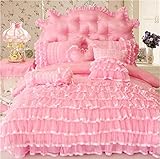 Fair Prices LELVA Luxury Beautiful Wedding Bedding Set,Korean Designer Princess Bedding Set,Girls Purple Pink Lace Ruffle Bedding Set Queen Size (Pink, Twin) in USA