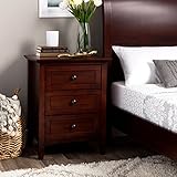 Enjoy this contemporary version of a traditional Shaker nightstand for a charming rustic look in your bedroom. Its three-drawer design is a perfect complement to either transitional or traditional decors. Store magazines, your favorite book, tissues, medications or anything you need at night, so you don't have to get out of bed multiple times. The top surface offers a perfect place for a reading lamp, some romantic candles, a favorite photo or other personal items to show your individuality. Easily open the drawers with the attached full-extension draw glides. This nightstand is crafted of solid mahogany and engineered wood for durability.